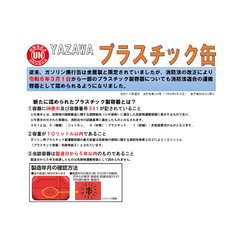 矢澤産業 YAZAWA プラスチックガソリン携行缶 5L YGP-5 4938802820013
