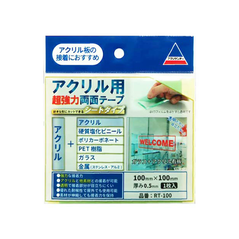 アクリサンデー アクリル用 超強力 両面テープ シートタイプ RT-100 100mm×100mm メール便対応(10個まで) 4953463692793