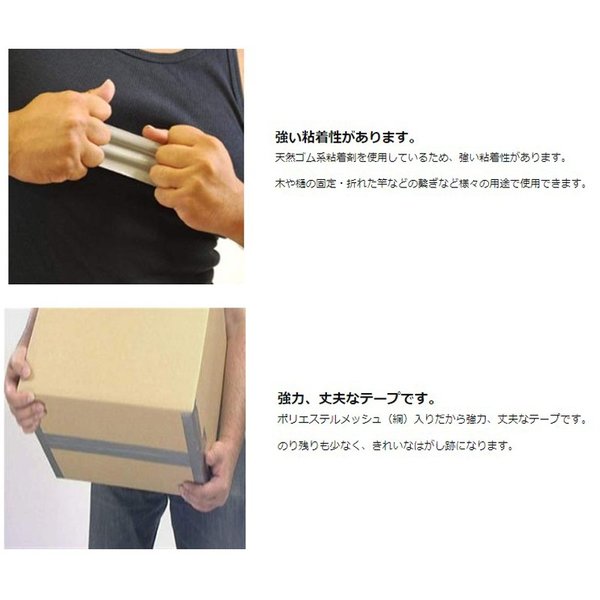 | ● ポリエステルメッシュ(網)入りだから強力、丈夫なテープです。 ● 天然ゴム系粘着剤を使用しているため、強い粘着性があります。 ● ポリエチレンフィルムでカバーし、防水能力があります。 ● 手で切れるため、作業時に便利です。 ● のり残りが少なく、きれいなはがし跡になります。 ● 漏水防止・木や樋の固定・折れた竿などの繋ぎなど様々の用途で使用できます。 ● 規格:48mm×10m 【注意事項】 ●表示の用途以外には使用しないでください。電熱器など高温になるところや電気絶縁用、人体には使用しないでください。 ●幼児の手の届くところや、直射日光の当たるところ、高温になるところには置かないでください。 ●本品は緊急補修用途のテープです。長時間補修機能を維持するものではありません。 ●貼り直しをすると接着強度が低下します。 ●凹凸面やクロロプレン系合成ゴム、ポリオレフィン系フィルム、シリコン、撥水処理面、特殊処理されたところには付かない場合があります。 ●素材によっては、はがす際に下地を損傷したり、のり残りすることがあります。 |
