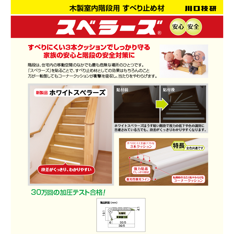川口技研 階段すべり止め ホワイトスベラーズ 屋内用 白 67cm 1本 4971771011969