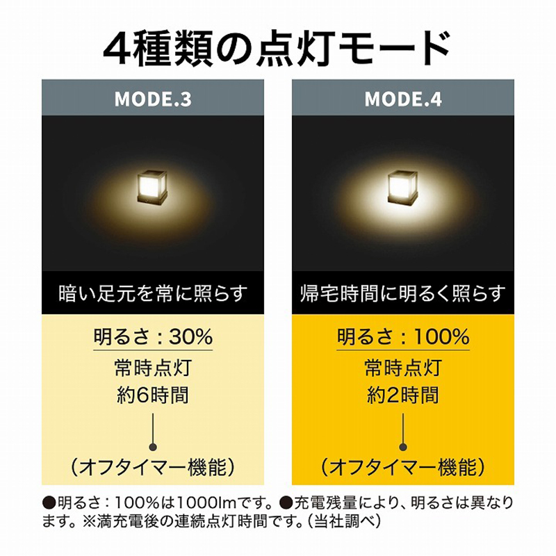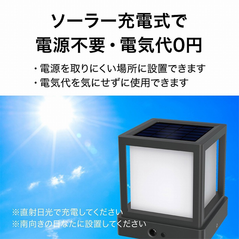 ●昼間に充電して、夜間持ち運べる光。エントランスやガーデンなど、さまざまなシーンに