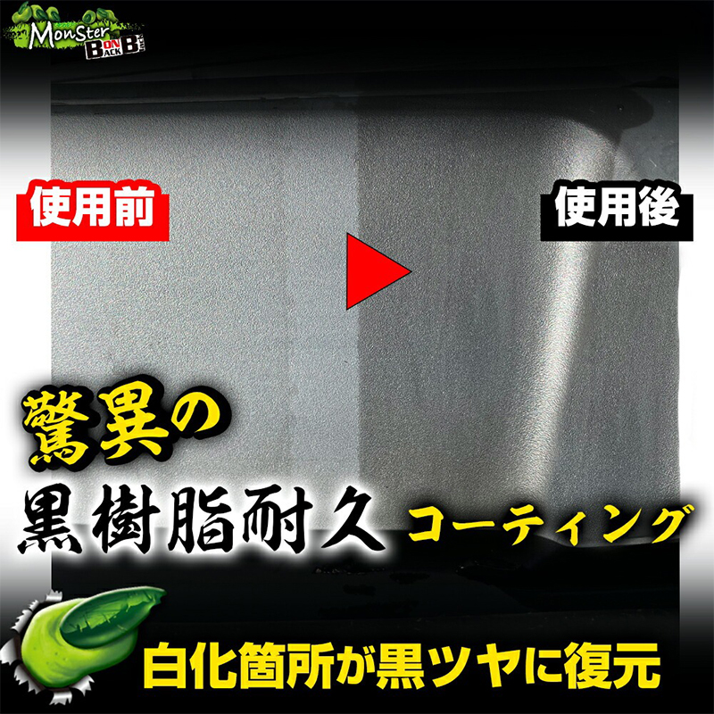 色あせた樹脂パーツに黒ツヤを与える、未塗装樹脂専用ガラスコーティング剤です。