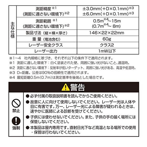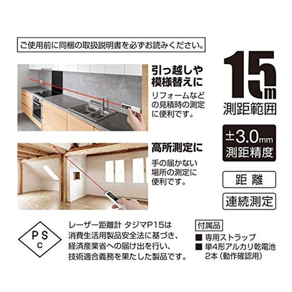 タジマ レーザー距離計 P15ブラック PSC認定取得品 LKT-P15B (レーザー距離計 測定器具) スティックタイプのコンパクトな設計