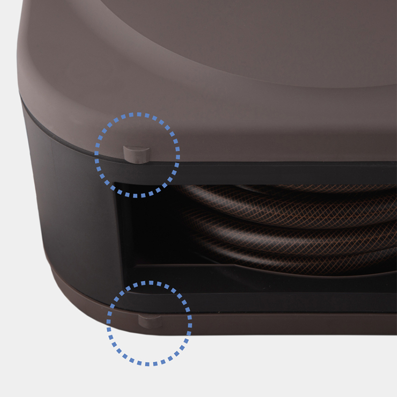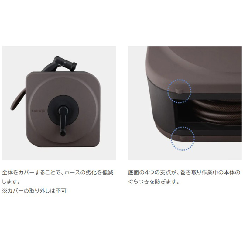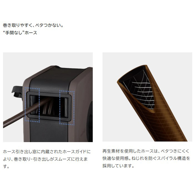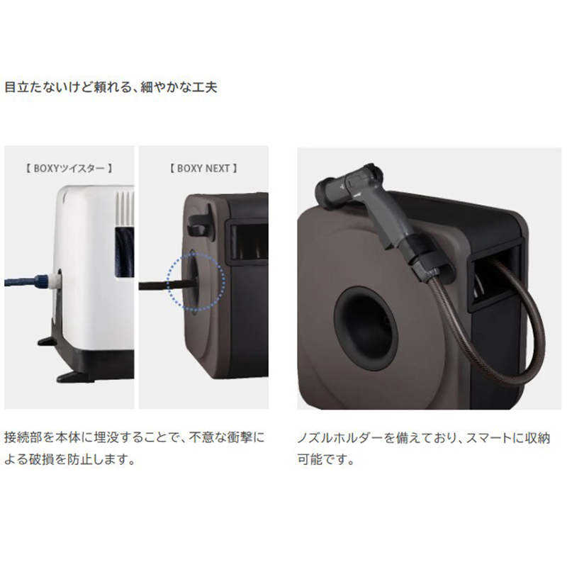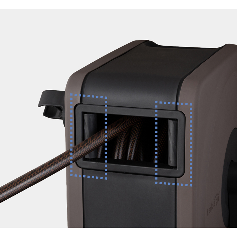 ●ボックスタイプでホース巻き取り時に小窓部分がガイドの様な役割をするため綺麗に巻き取れます。