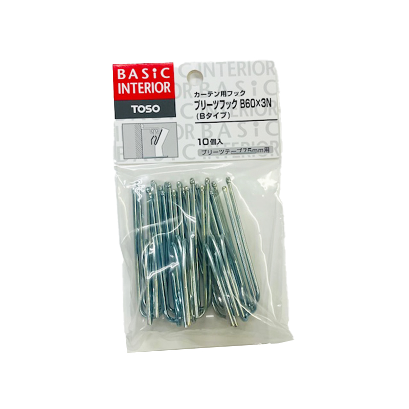 TOSO カーテンフック プリーツフック B60×3N プリーツテープ75mm用 10本入 メール便対応(6個まで) 4975559673677