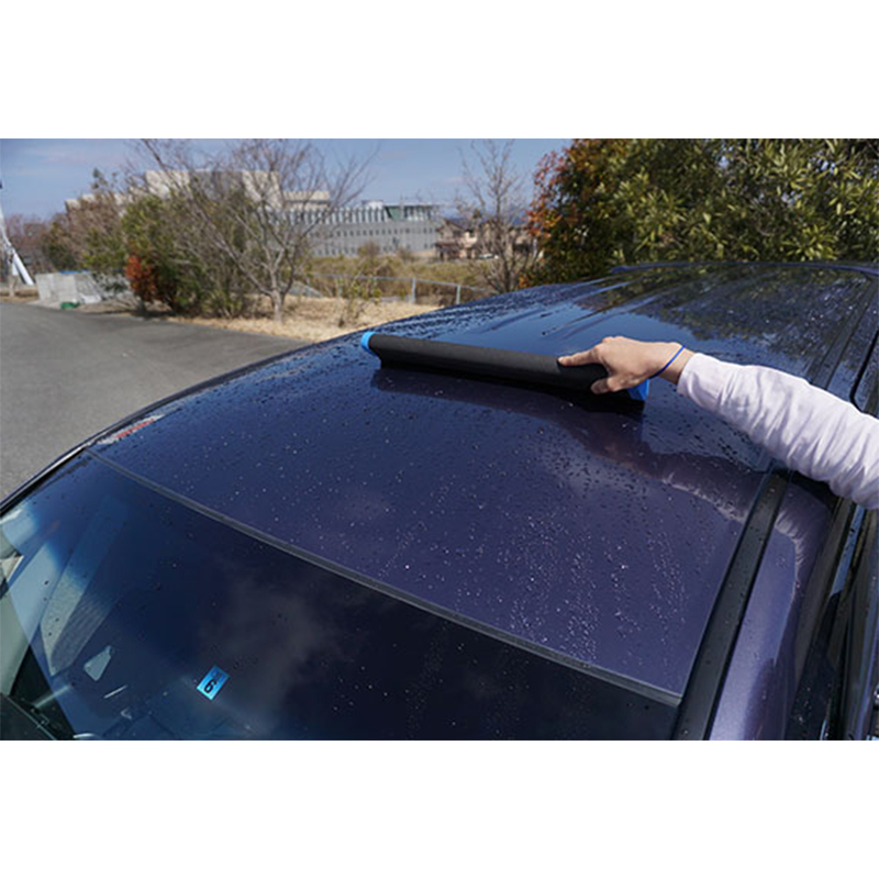 1.ボディやガラスにゴム部をフィットさせ、なでるように水滴を切ってください。