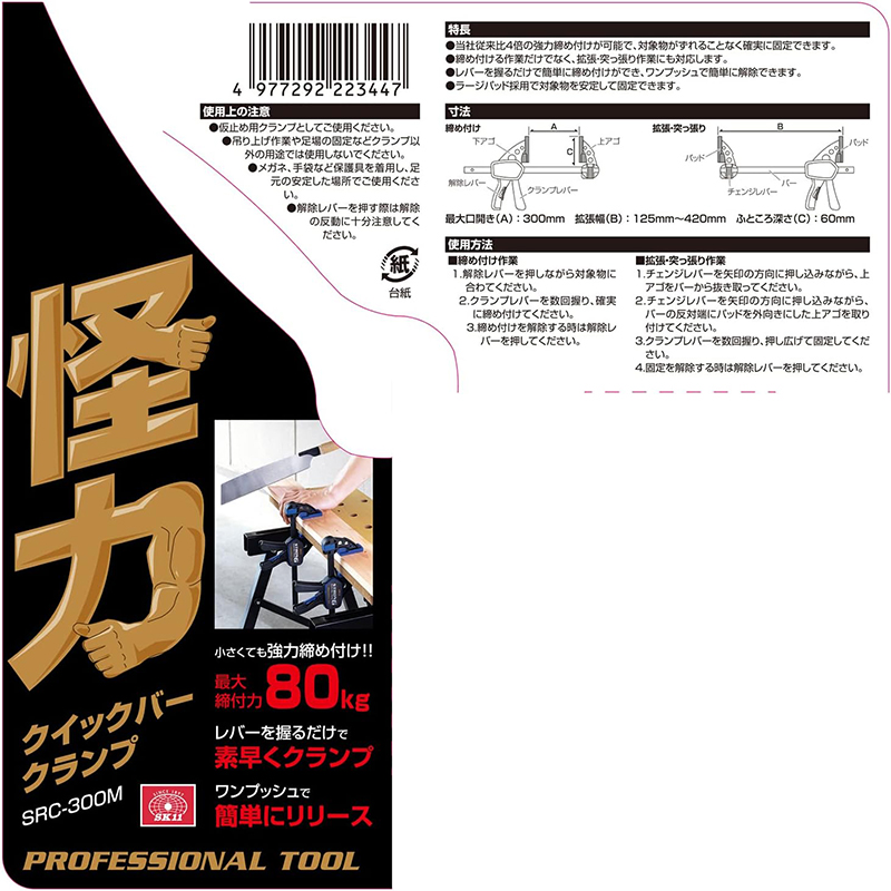 SK11 怪力クイックバークランプ M 最大口開き300mm SRC-300M 4977292223447