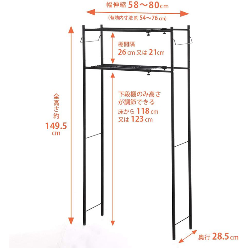 商品サイズ:幅 58〜80cm × 奥行 28.5cm × 高さ 149.5cm