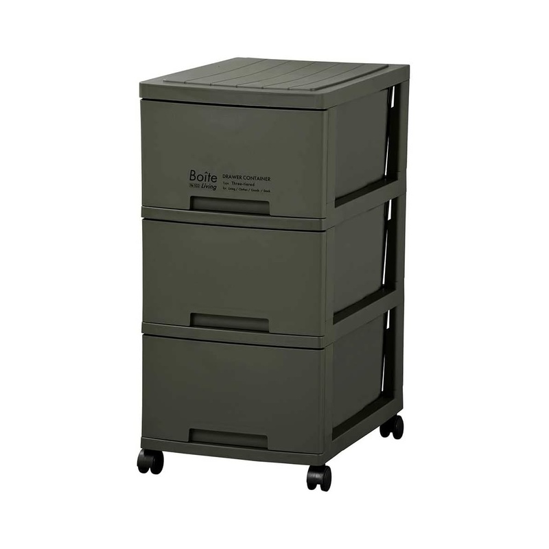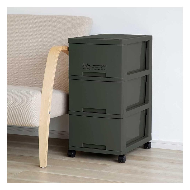 ベストコ チェスト Boiteリビング 3段収納 スリム カーキ MA-4037 4988562002716