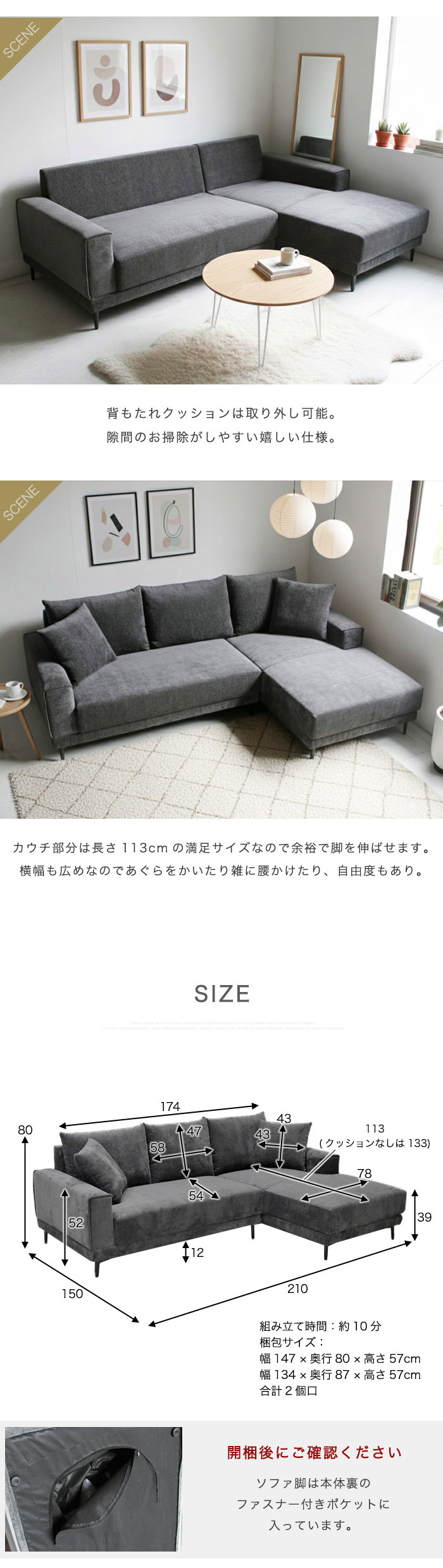 カウチソファー ソファー L字ソファー 3人掛け カウチソファ コーナーソファー 3人掛けソファー リビングソファー (選べる開梱設置サービス) 爆買