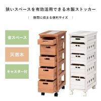 野菜ストッカー 木製 5段 幅25cm 完成品 キッチンワゴン キャスター付き 北欧 引き出し スリム キッチンストッカー 天然木 桐 タイル おしゃれ キッチン収納