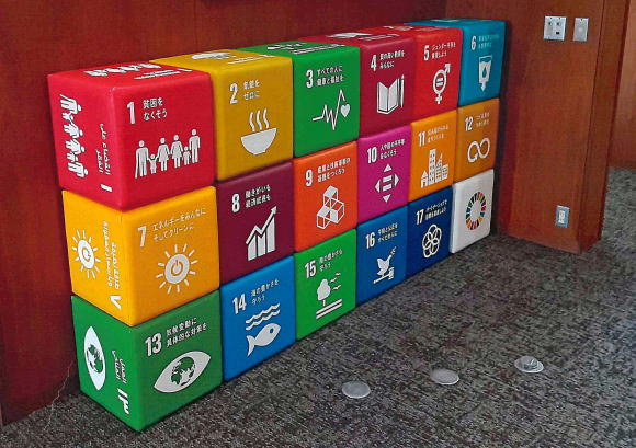 | 公共施設・イベント等のユニバーサルデザインの入ったキューブや椅子を置いて個性的なご案内にいかかですか | |