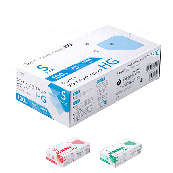 シンガー プラスチックグローブHG 粉なし 100枚 PVC0457PFTB 宇都宮製作 介護 使い捨て ビニール グローブ 介護用品
