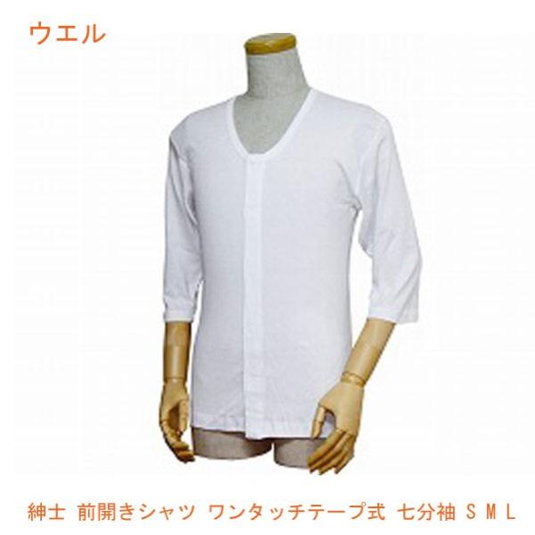 紳士 前開きシャツ ワンタッチテープ式 七分袖 43212 S M L ウエル (介護 肌着) 介護用品