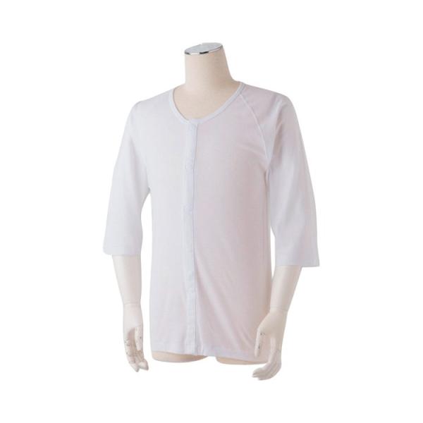 ワンタッチ式肌着 七分袖 紳士用 S-M-W2 白 日伸 (介護 前開き 肌着 ラグラン 7分袖) 介護用品