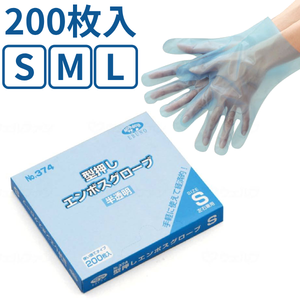 使い捨て手袋 左右兼用 型押しエンボスグローブ 374 1箱 200枚入 エブノ 施設用品 グローブ プラスチックグローブ 介護用品
