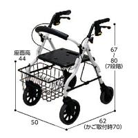 ・歩き疲れた際に座れる大型座面と、お買い物などに便利な着脱式のかご付き歩行車
