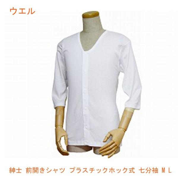 紳士 前開き 七分袖シャツ プラスチックホック式 43211 M L ウエル (介護 肌着) 介護用品