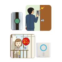 ※電池は別売です。・ボタンを押すと音が鳴り、受信機が光と音でお知らせ。