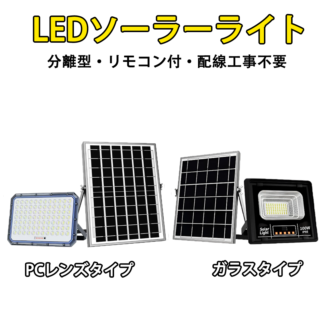 ソーラーライト LED 分離式 ソーラー投光器 昼光色 リモコン付 ガーデンライト 防水 配線不要 電気代ゼロ 防犯灯 庭園 看板照明 タイプ選択可 YY-X