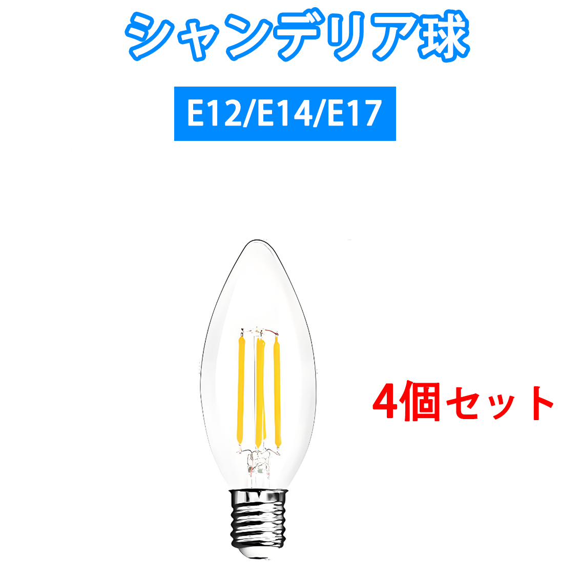LED電球 E17 E14 E12 シャンデリア球 C35 フィラメント クリア 電球色 エジソンランプ エジソン球 EX-C35-4W-xset