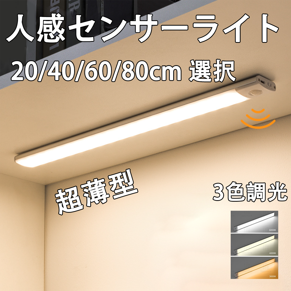 センサーライト 人感センサーライト USB充電式 サイズ選択 室内 玄関 廊下 調光調色 薄型 バッテリー内蔵 バーライト 配線工事不要 ポーチライト HWXD