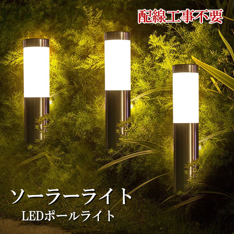 LED ソーラーライト ポールライト 埋め込み式 自動点灯 電気代不要の太陽光充電式