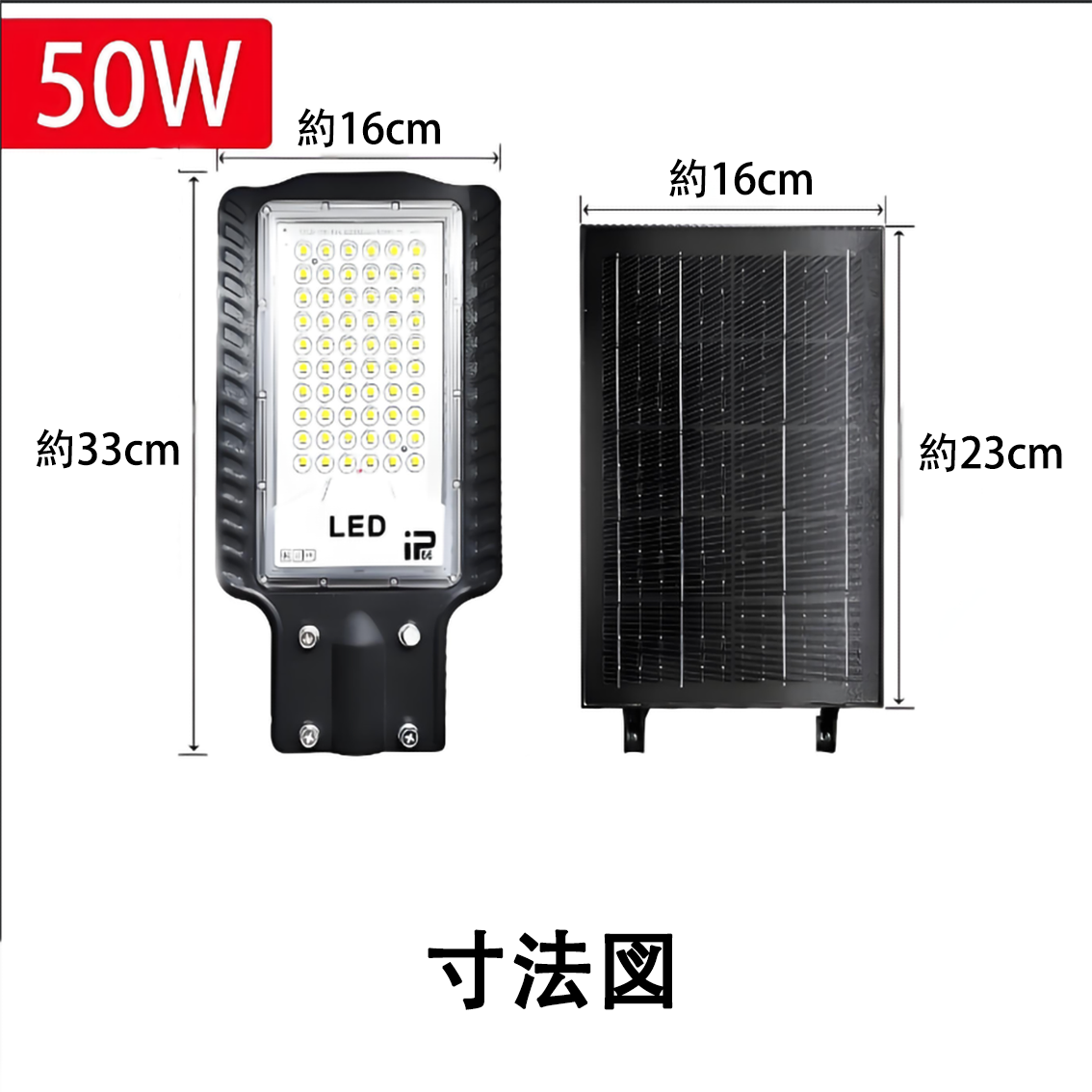 ・50W相当タイプ:LED数:60、電池容量:5000mAH、全光束:約1000LM、本体約330x160mm、パネル約230x160mm