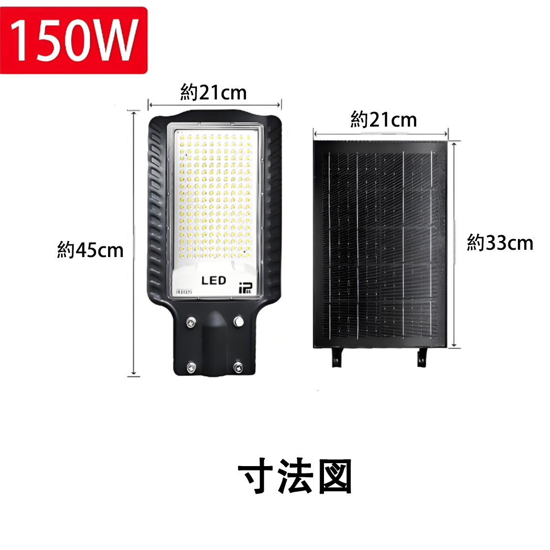 ・150W相当タイプ:LED数:180、電池容量:10000mAH、全光束:約2000LM、本体約450x210mm、パネル約330x210mm