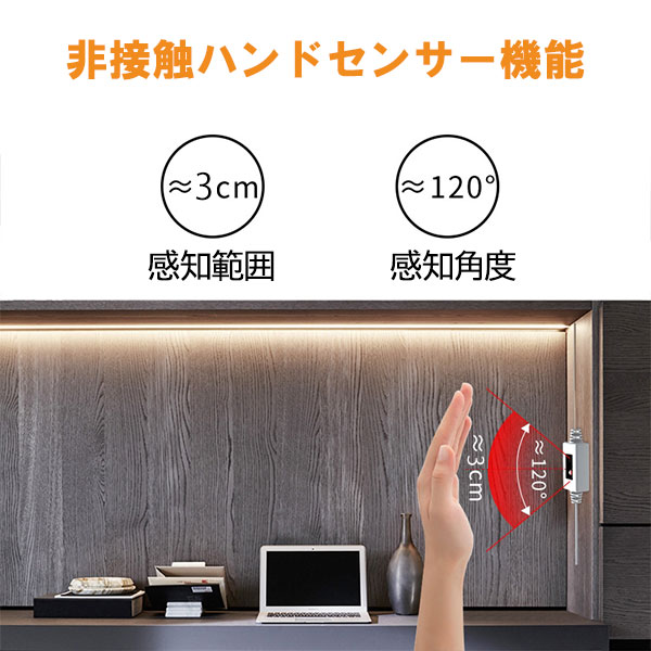 LEDテープライト ハンドセンサー式 COBタイプ 昼光色 均一発光 非接触スイッチ 棚下照明 USB式 防水 長さ選択 SSW-XM-D