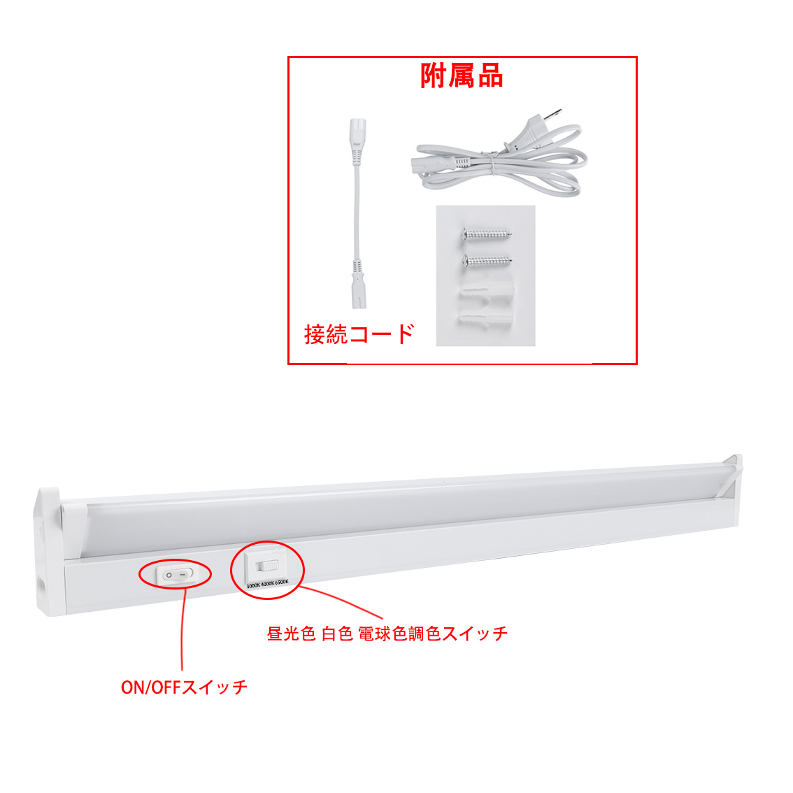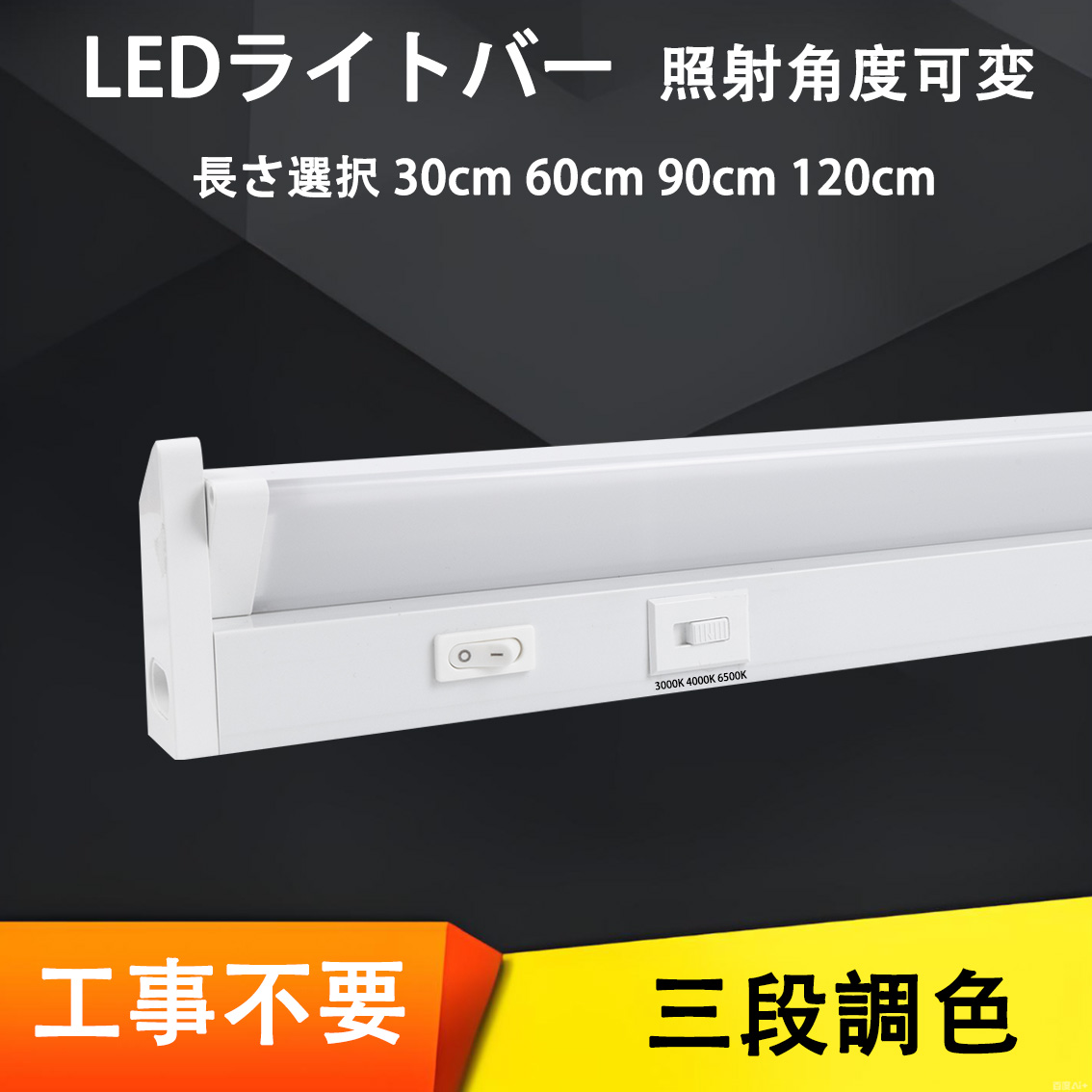LED蛍光灯 LEDライトバー LED流し元灯 直付 壁付両用型 工事不要 照射角度可変 三段調色 スイッチ付き LEDベースライト バーライト 台所照明 T5RT-X