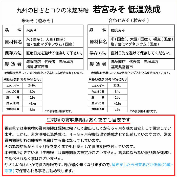 若宮みそ 低温熟成 は低温でじっくりと熟成させる事で、米麹の甘味と大豆のコクを最大限に引き出しながら辛さを抑えた特上味噌です。
