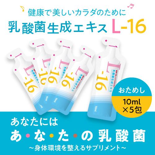 商品名 | 乳酸菌生成エキス L-16 お試し ●配合成分につきましては、上記の商品名をタップしてご確認ください。 |
