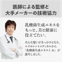 特徴 | L-16は、毎日スッキリしない、健康・美容を気にする方におすすめの身体環境を整え、体をケアするサプリメントです。農薬不使用の国産大豆を使用し、植物原料100%で無香料・無着色、乳成分不使用の乳酸菌生成エキスです。 |