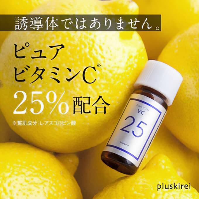 特徴 | プラスピュアVC25は、ピュアビタミンC(※1)を25%高濃度(※2)で配合した美容液です。 うるおいを与え、くすみ(※3)や毛穴(※4)をケアし、乾燥による小じわを目立たなく(効能評価試験済み)することで、クリアでハリとツヤに満ちた肌へと導きます。 水を一切使用しない独自のA-PVC(両親媒性ピュアビタミンC)設計で、水にも油にもなじむ性質を持ち、肌(角質層)のすみずみまでピュアビタミンC(※1)を素早く届けます。 とことんピュアにこだわりました。 〇防腐剤フリー 〇鉱物油フリー 〇高級アルコールフリー 〇エタノールフリー 〇合成香料フリー 〇着色料フリー ※プラスピュアVC25をご利用中は、必ず日焼け止めも併用して下さい。 (※1 L-アスコルビン酸:肌を整える成分 (※2 当店取り扱い商品比 (※3 乾燥によるくすみを潤わせて明るい印象に (※4 潤いにより、毛穴の目立ちにくい肌へ |