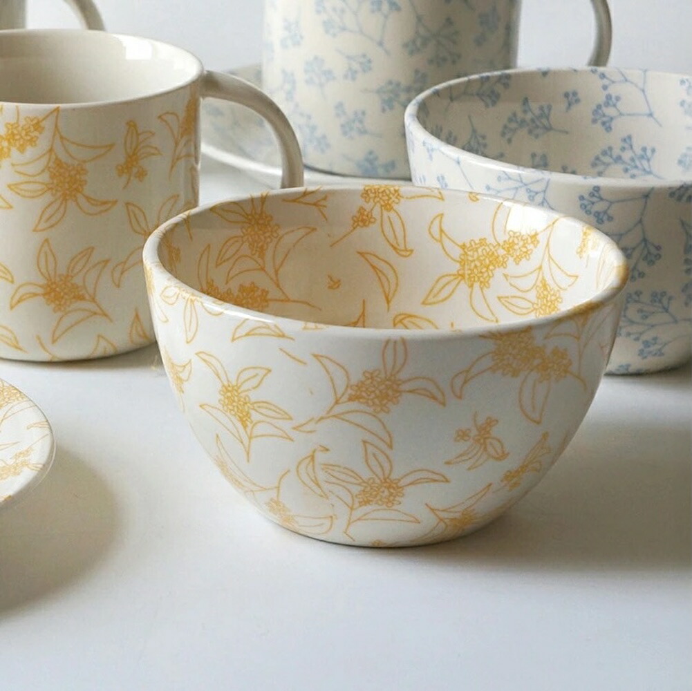 | 落ち着いたトーンの模様は、朝のコーヒーや午後の紅茶、どんなドリンクとも相性がよく、心を穏やかにしてくれる存在。 |