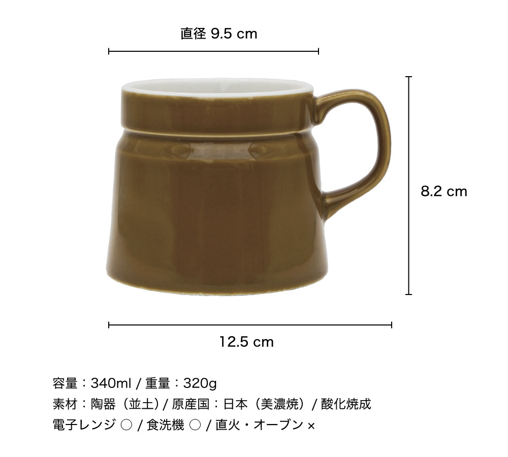 | 丈夫で力強さのある輪郭に、どこかやさしさも感じるデザイン。 たっぷり入る大きめサイズなので、コーヒーや紅茶はもちろん、スープやカフェオレなどにもぴったりです。 |