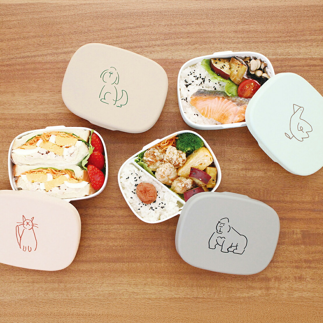 | 落書きのようなかわいい動物たちのイラストが描かれたランチボックス。 側面には動物ごとに連想される食べ物のイラストも。 400mlの食べきりサイズで、食事量の少ない女性やお子様のお弁当にぴったりです。 蓋は閉めるだけでカチッとロックされるのでランチベルト無しで持ち運びできます。 スライドできる斜めの仕切りは取り外し可能でお手入れが簡単です。 ※ 蓋は電子レンジ、食器洗い乾燥機のご使用はできません。 | |