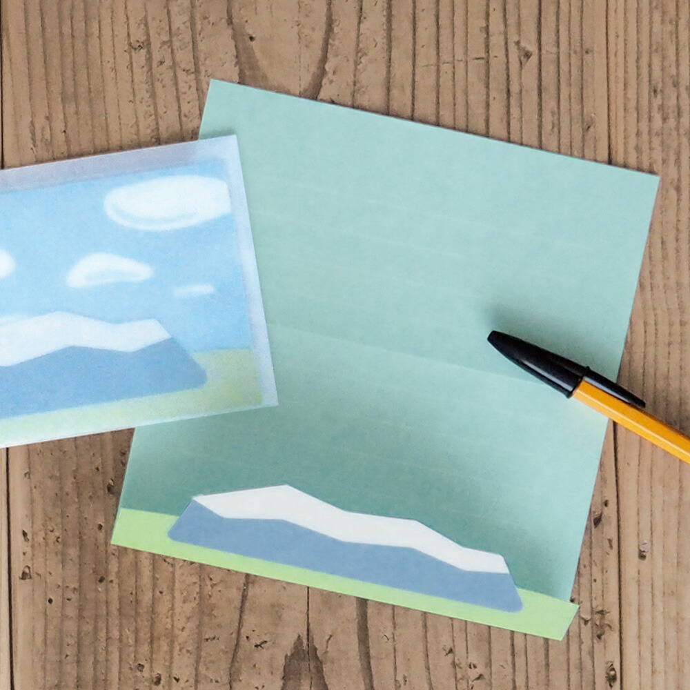 | セレクト雑貨店「アラスカ文具」と MATOKA が 山や自然の風景をテーマに作ったコラボステーショナリー「MOUNTAIN LANDSCAPE(マウンテン ランドスケープ)」シリーズのレターセットです。 |