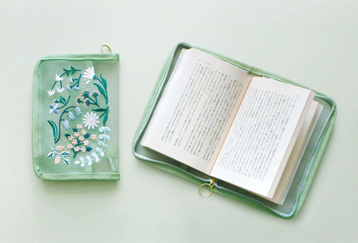 | 軽やかな素材感とやさしい刺繍が、本の表紙をさりげなく彩り、読む時間をより心地よいものにしてくれます。 |