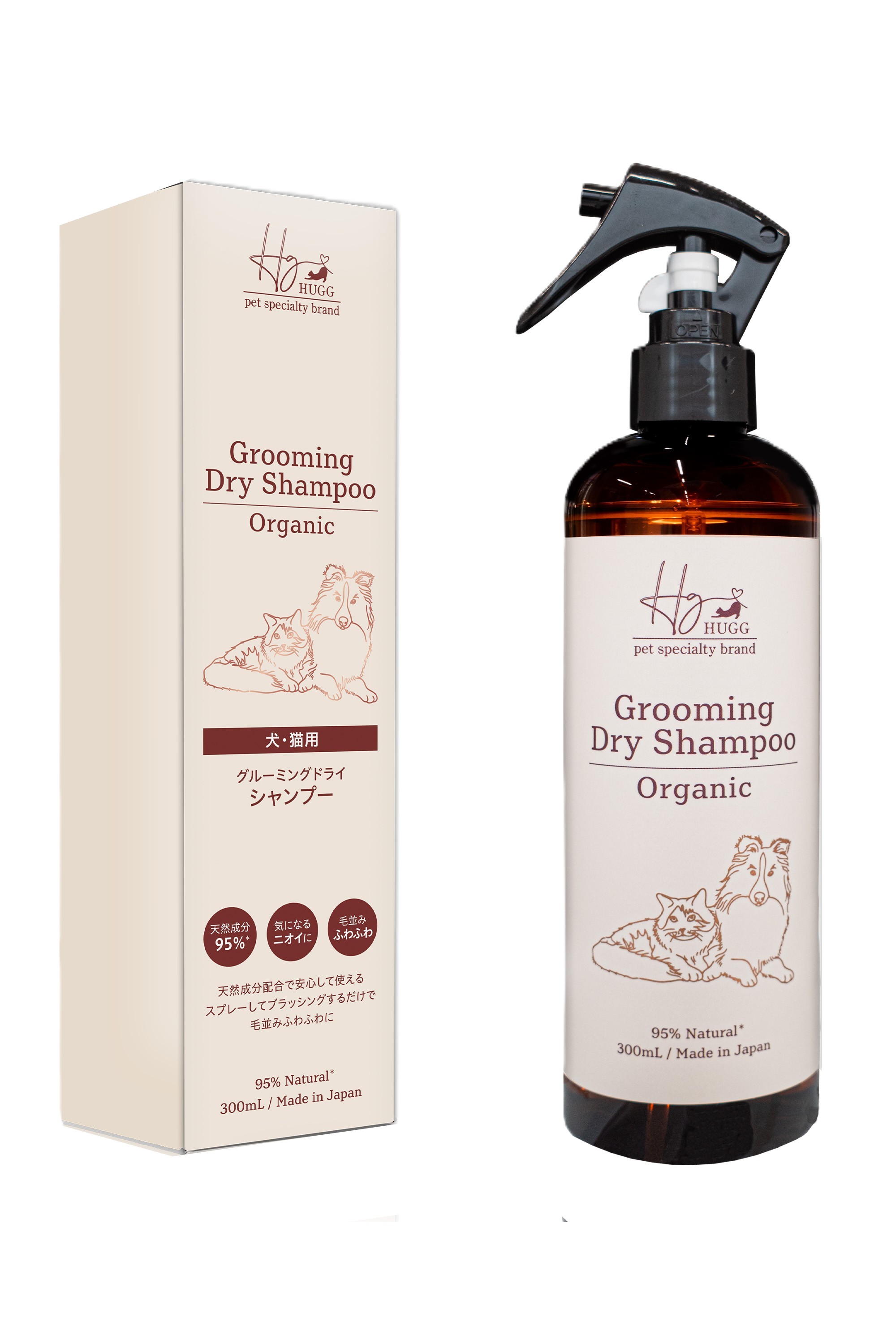 HUGG 犬猫グルーミングスプレー 消臭スプレー 天然成分95% 300ml ブラッシングスプレー ペット用ドライシャンプー 犬 猫 静電気防止 オーガニック