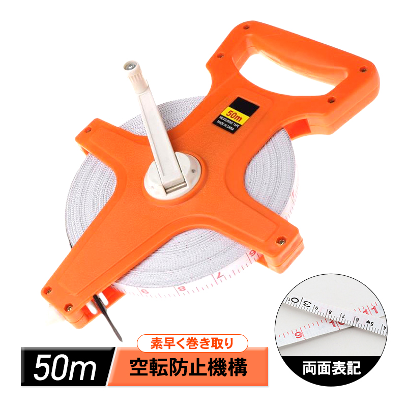 メジャー 50m 巻尺 簡単 測定 計測 工具 テープ スケール コンパクト 防水 耐久性 安定 メートル 柔らかい 定規 コンベックス ハンドル 学校 現場 工事