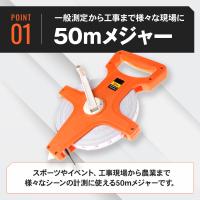 スポーツやイベント、工事現場から農業まで、様々なシーンの計測に使える50mメジャーです。