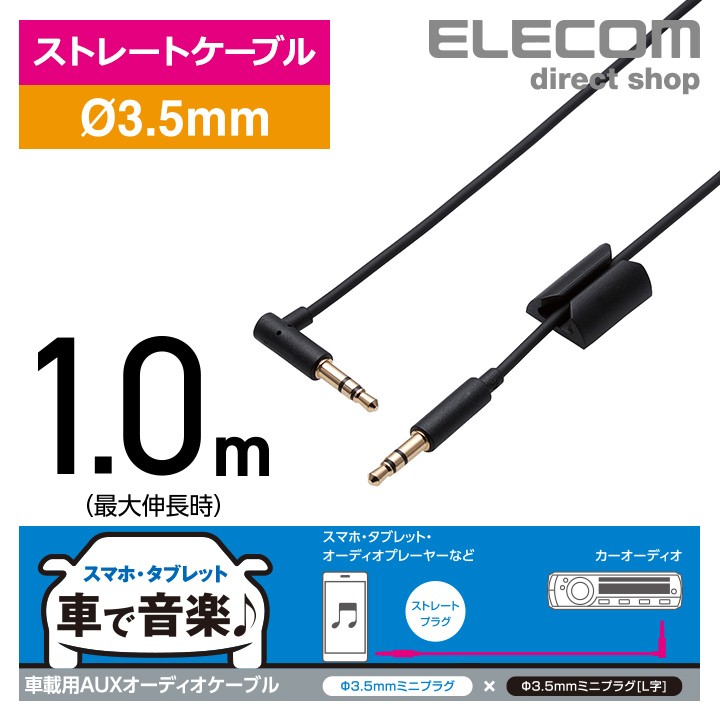 商品名 | エレコム 車載用 スマホ タブレット ステレオ ミニプラグ 3.5mm AUXオーディオケーブル L字-ストレート オス-オス 音楽 車 ブラック 1.0m┃MPA-C35L10BK |