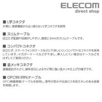 特徴 | ●スマートフォンやタブレット、音楽プレーヤーのφ3.5ステレオミニジャックと、スピーカーやコンポ、カーステレオ、Bluetooth(R)スピーカーなどのφ3.5 AUX INポートを接続することで、手軽に音楽を楽しめるオーディオφ3.5AUXケーブルです。 ●目立たず配線や収納がしやすい、直径2.3mmのスリムケーブルです。 ●目立たず、スマートフォンや音楽プレーヤーのケースに干渉しにくいコンパクトなコネクタを採用しています。 ●スマートフォンなどの機器接続側には、厚みのあるケースなどを装着していても接続できるストレートプラグを採用しています。 ●スピーカーなどへの接続側には、コンパクトに接続できるL型プラグを採用しています。 ●信号劣化の少ないOFC99.99%(無酸素銅)ケーブルを採用しています。信号の歪みや伝送ロスを抑えることができ、キレのある音質を再現できます。 ●接触抵抗が小さく、経年劣化によるサビなどに強い金メッキ仕上げの端子です。 ●パウダーを混ぜた特殊光沢塗装で、高級感のある外観に仕上げています。 |