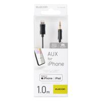 商品名 | エレコム Lightning-ステレオミニプラグ 3.5mm 変換AUXケーブル ストレート-ストレート オス ライトニングケーブル iphone 音楽 車 ブラック 1.0m┃AX-L35D10BK |