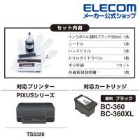 商品名 | エレコム キャノン用 詰め替え インク 詰替えインク PIXUS TS5330 BC-360 BC-360XL 顔料 ( 約8回分 XLサイズは約4回分 ) ブラック┃THC-360BK8 |
