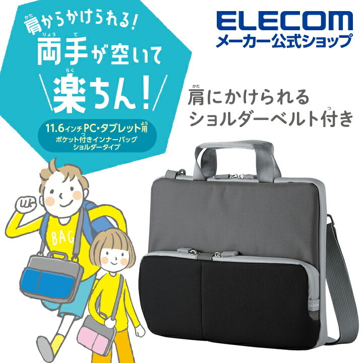 商品名 | エレコム インナーバッグ ショルダーベルト付き ポケット インナーバッグ ノートパソコン ノートPC 低反発ポリウレタン パソコン ブラック┃BM-IBHPTS11BK |