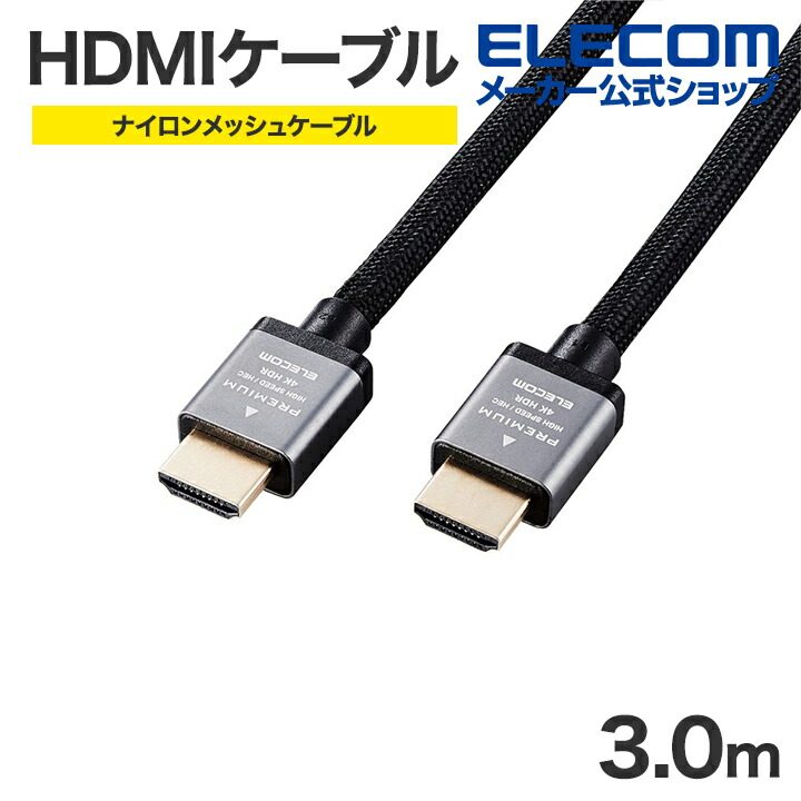 商品名 | エレコム HDMIケーブル 3.0m PremiumHDMI ケーブル アルミコネクタ Premium 4K 2K 60P 対応 ナイロンメッシュケーブル 3.0m ブラック┃ECDH-HDP30SBK |