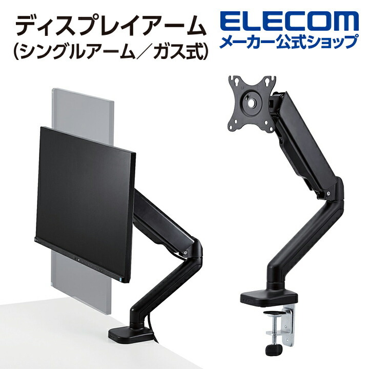 商品名 | エレコム ディスプレイアーム 17〜32インチサイズ対応 1画面 シングルアーム ガス式 ブラック┃DPA-SS02BK |